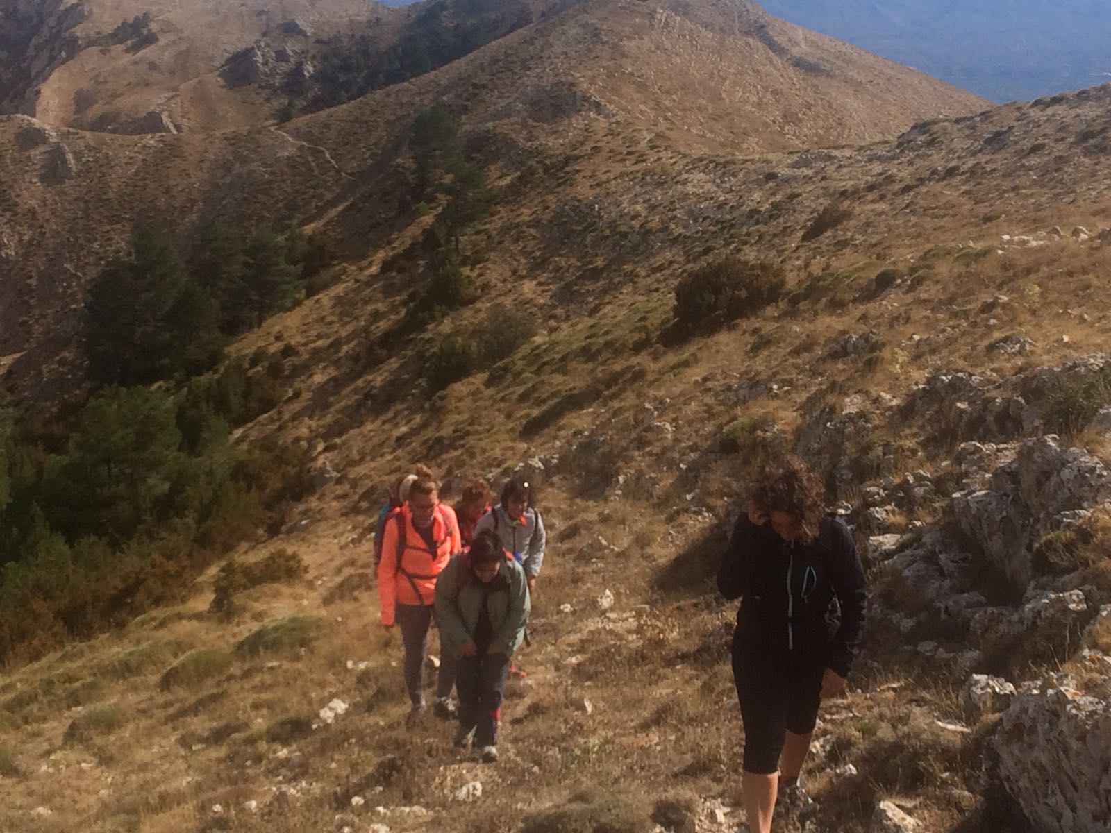 El primer avituallament el pasen a garebé dos km en l'anomenada direcíssima i, agarrades forces, continuen pujant per la següent pujada per l'Escaleta on l'espera el segón avituallament pasats 3km de la sortida i amb la primera vista a la meta, les antenes de Caro.